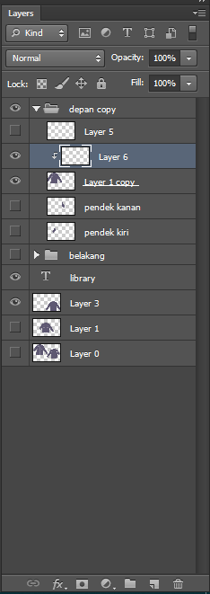 3. Pastikan layer baru tersebut berada diatas layer desain baju kita